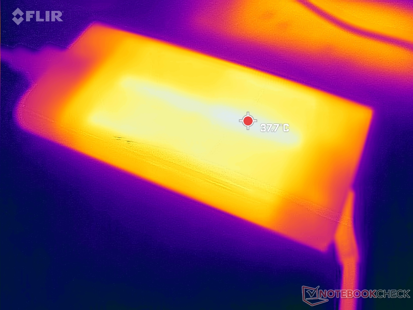 (-) Il lato inferiore si riscalda fino ad un massimo di 53.2 °C / 128 F, rispetto alla media di 43.3 °C / 110 F