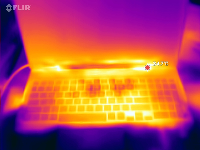 (+) In idle, la temperatura media del lato superiore è di 27.7 °C / 82 F, rispetto alla media deld ispositivo di 33.9 °C / 93 F.