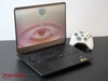 Il telaio è stato ridisegnato quest'anno: invece di uno schermo 16:9, ora abbiamo un display 16:10, che rende la cornice inferiore più sottile. Le dimensioni sono leggermente cambiate: meno larghezza, un po' più profondità, stesso spessore. Il display si apre a circa 135 gradi, con lievi oscillazioni nelle cerniere.