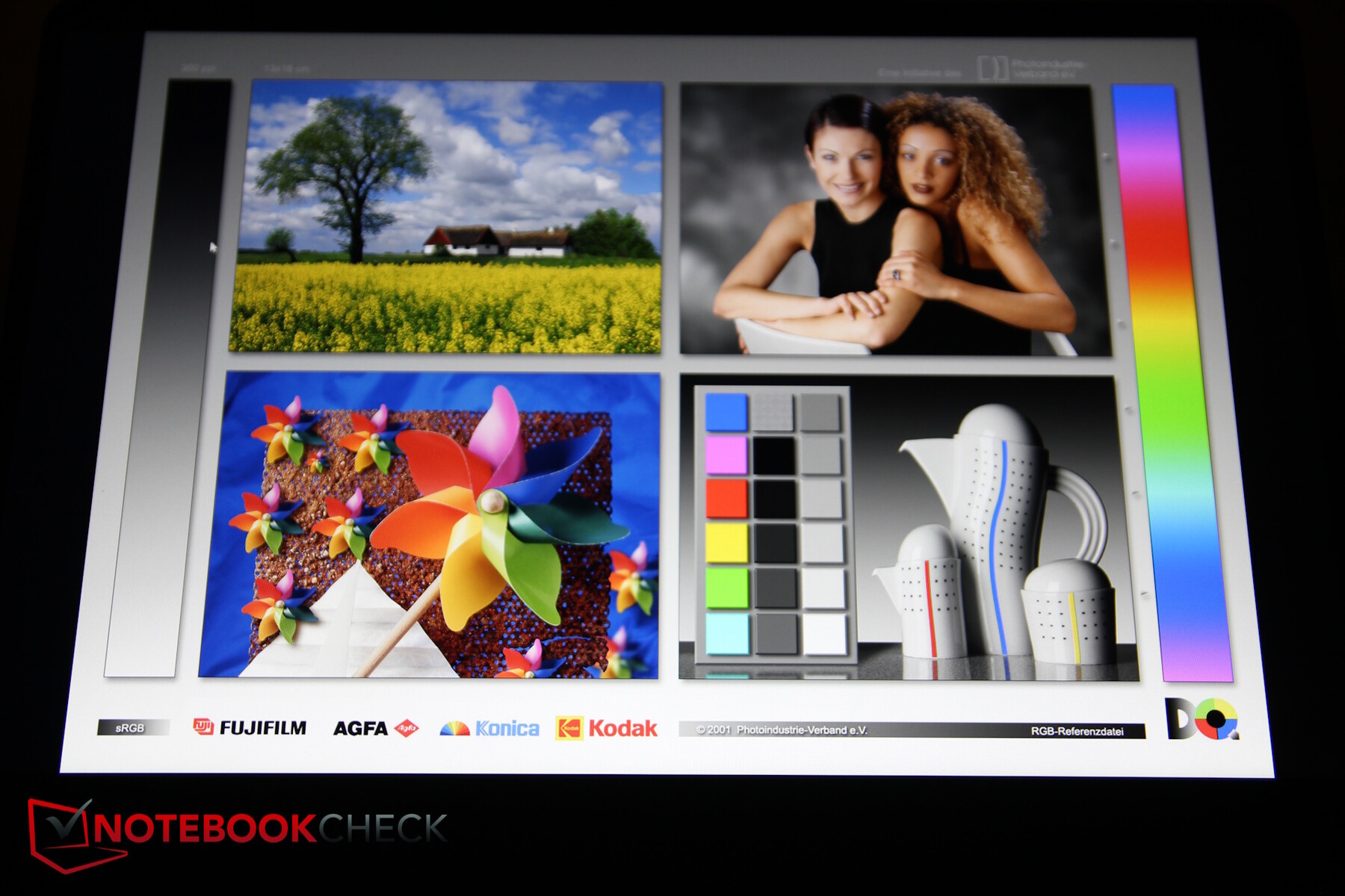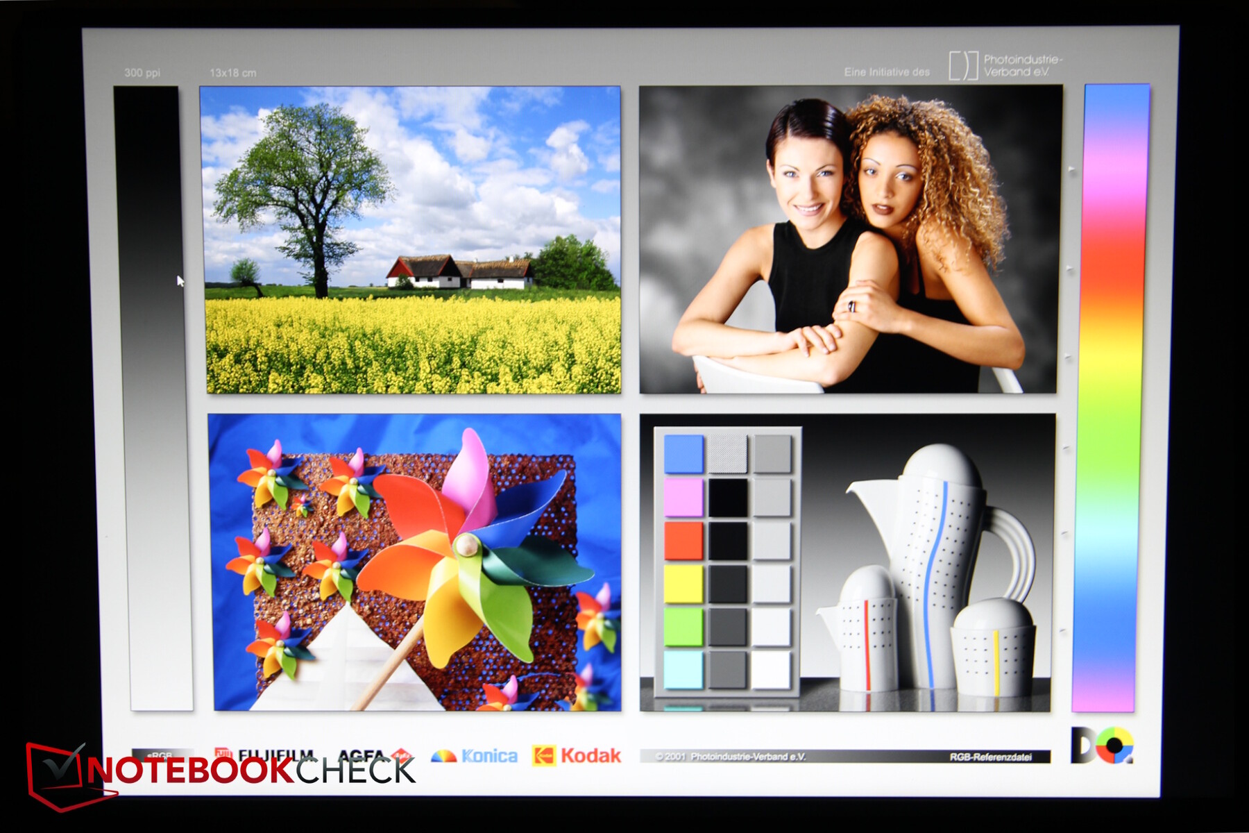 Le nostre misurazioni hanno confermato la luminosità di 300 nit e la solida uniformità, anche se abbiamo notato una piccola macchia di luce in basso a destra. Il contrasto è buono, ma la copertura dei colori è scarsa, inferiore al 60% sRGB, che anche altri computer portatili economici riescono a superare.