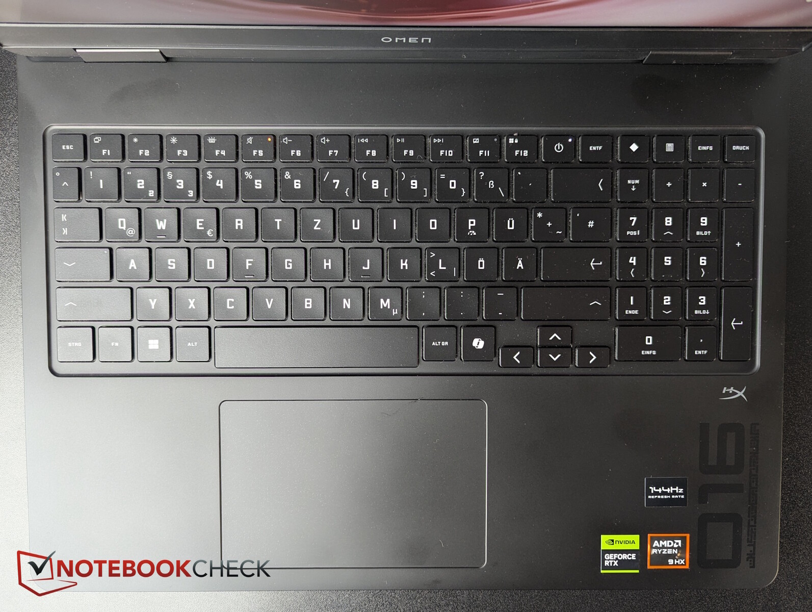 La retroilluminazione RGB a 4 zone offre due livelli di luminosità. HP vanta un rollover a 26 tasti con anti-ghosting. La corsa dei tasti è breve ma sembra più profonda di quanto non sia, grazie a un feedback ben smorzato. La digitazione è veloce, confortevole e silenziosa.