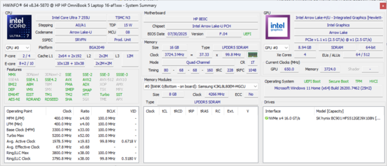L'OmniBook 5 16 è un computer portatile orientato al budget, simile alla serie Pavilion. L'ultimo modello è dotato di una moderna CPU Arrow Lake-U, ma senza grafica discreta o funzioni di visualizzazione di lusso per mantenere bassi i costi.