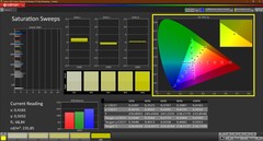 Il display LG non è stato in grado di raggiungere il valore pubblicizzato del 100% sRGB: con il 94,3%, l'obiettivo è stato mancato di poco. Di conseguenza, il pannello del Lenovo ThinkPad P14s Gen 3 non può essere consigliato per l'editing di immagini. Gli utenti che desiderano farlo farebbero meglio a scegliere lo schermo WQUXGA.