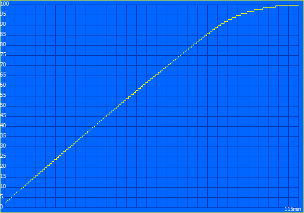 Una ricarica completa richiede 115 minuti all'accensione del dispositivo e l'80% della capacità è pronto dopo 74 minuti. Nei prossimi giorni aggiungeremo altri test sulla batteria (riproduzione video, video HDR, test WiFi a 120 Hz).