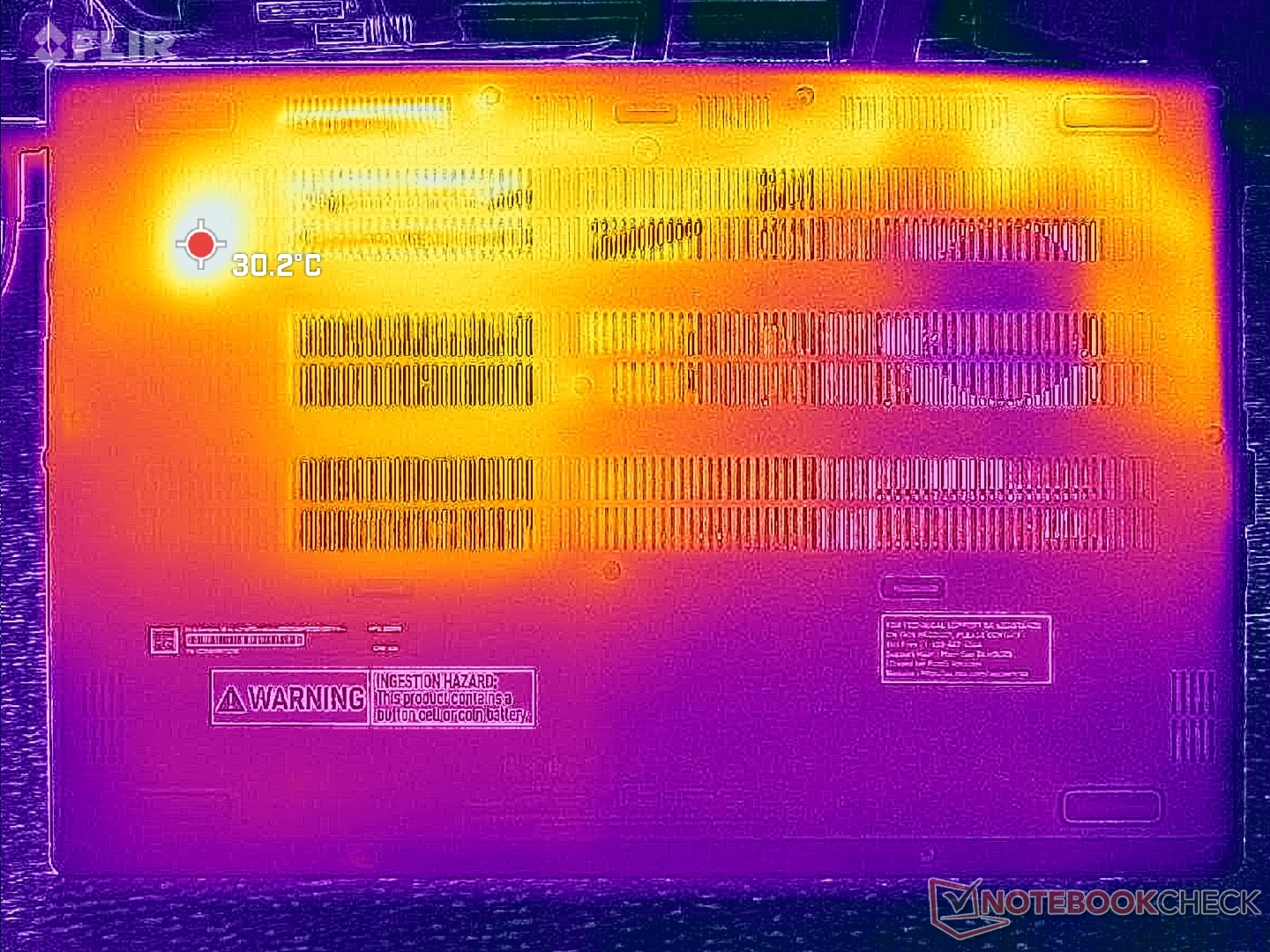 (+) In idle, la temperatura media del lato superiore è di 26.8 °C / 80 F, rispetto alla media deld ispositivo di 29.5 °C / 85 F.
