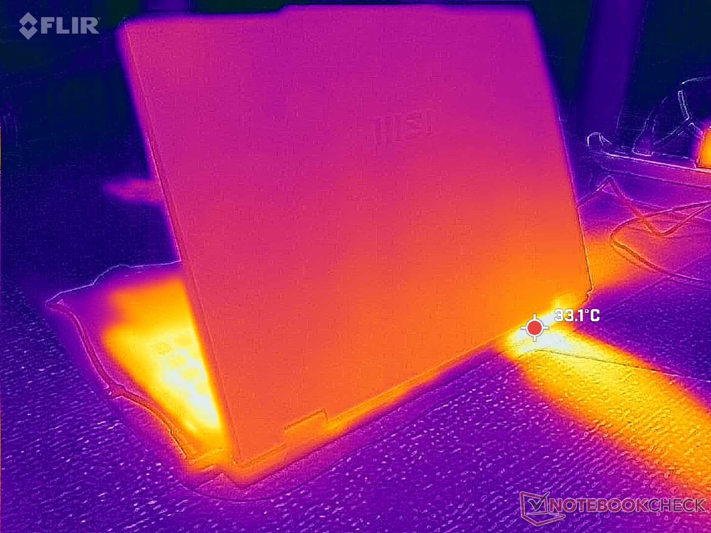 (+) La temperatura massima sul lato superiore è di 35 °C / 95 F, rispetto alla media di 34.3 °C / 94 F, che varia da 21.2 a 62.5 °C per questa classe Office.