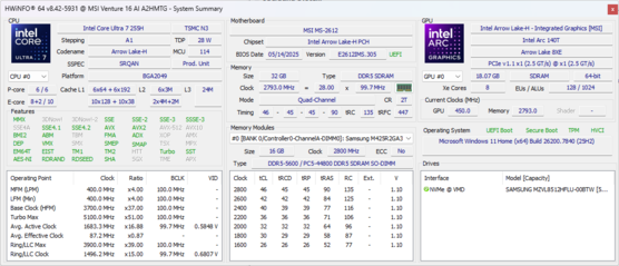 | MSI Venture 16 AI A2HMTG Intel Core Ultra 7 255H ⎘ Intel Arc Graphics 140T ⎘ 32 GB Memoria | Prezzo di listino: 1000 USD | 2.1 kg | 23.15 mm | 16.00" 1920x1200 142 PPI IPS | |