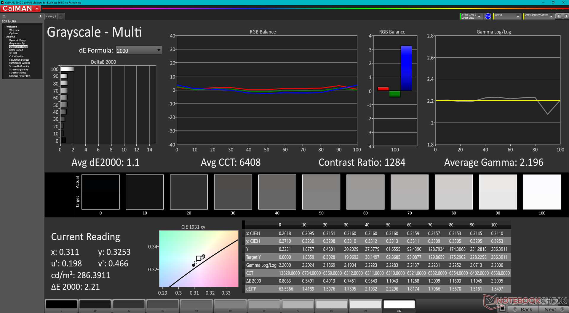 ΔE Greyscale Calman: 1.1 | ∀{0.09-98 Ø5}