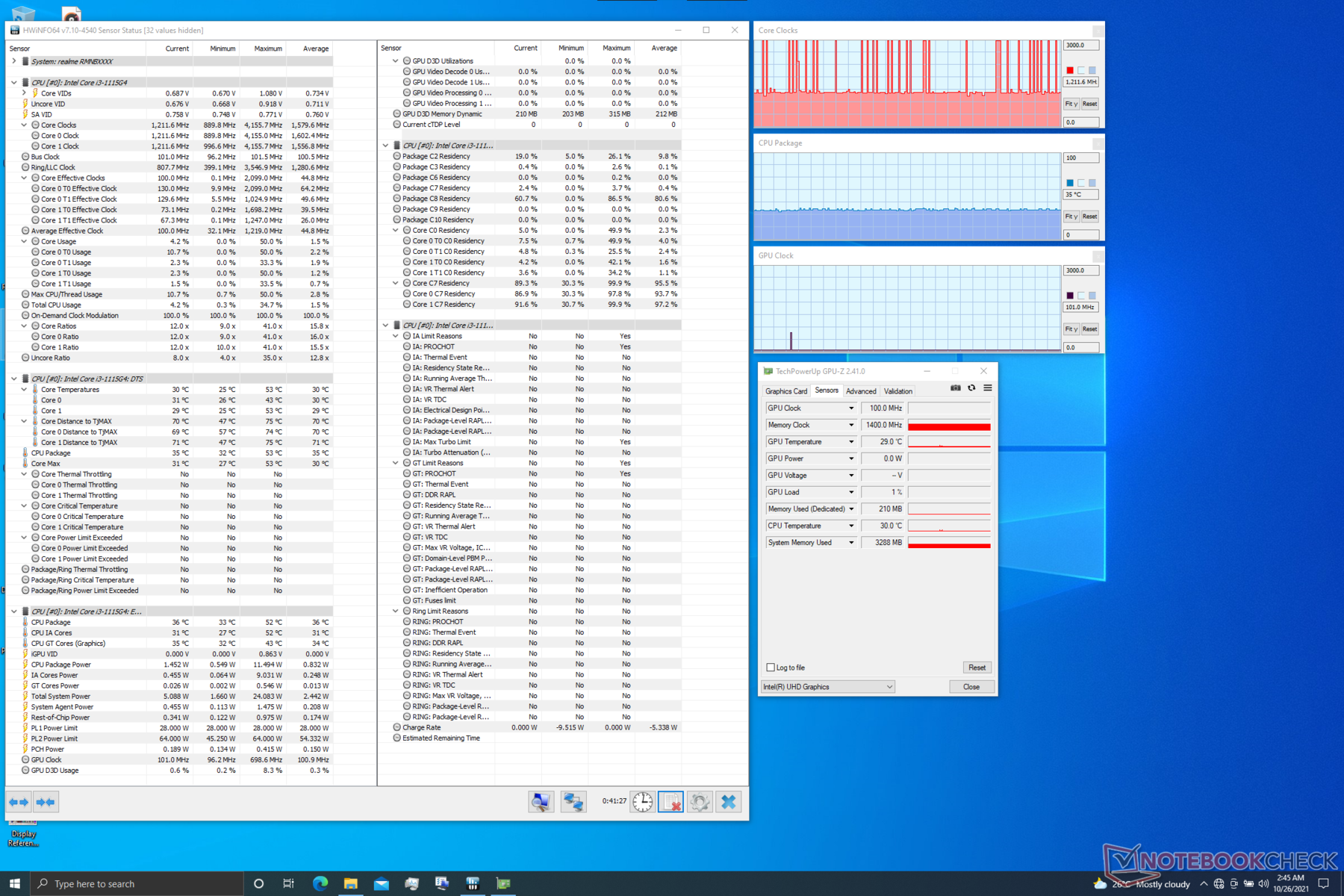 Anche se vediamo occasionali fluttuazioni nei clock, il Realme Book (Slim) mostra prestazioni abbastanza stabili sotto stress ai limiti nominali PL1/PL2 senza alcun segno significativo di throttling.