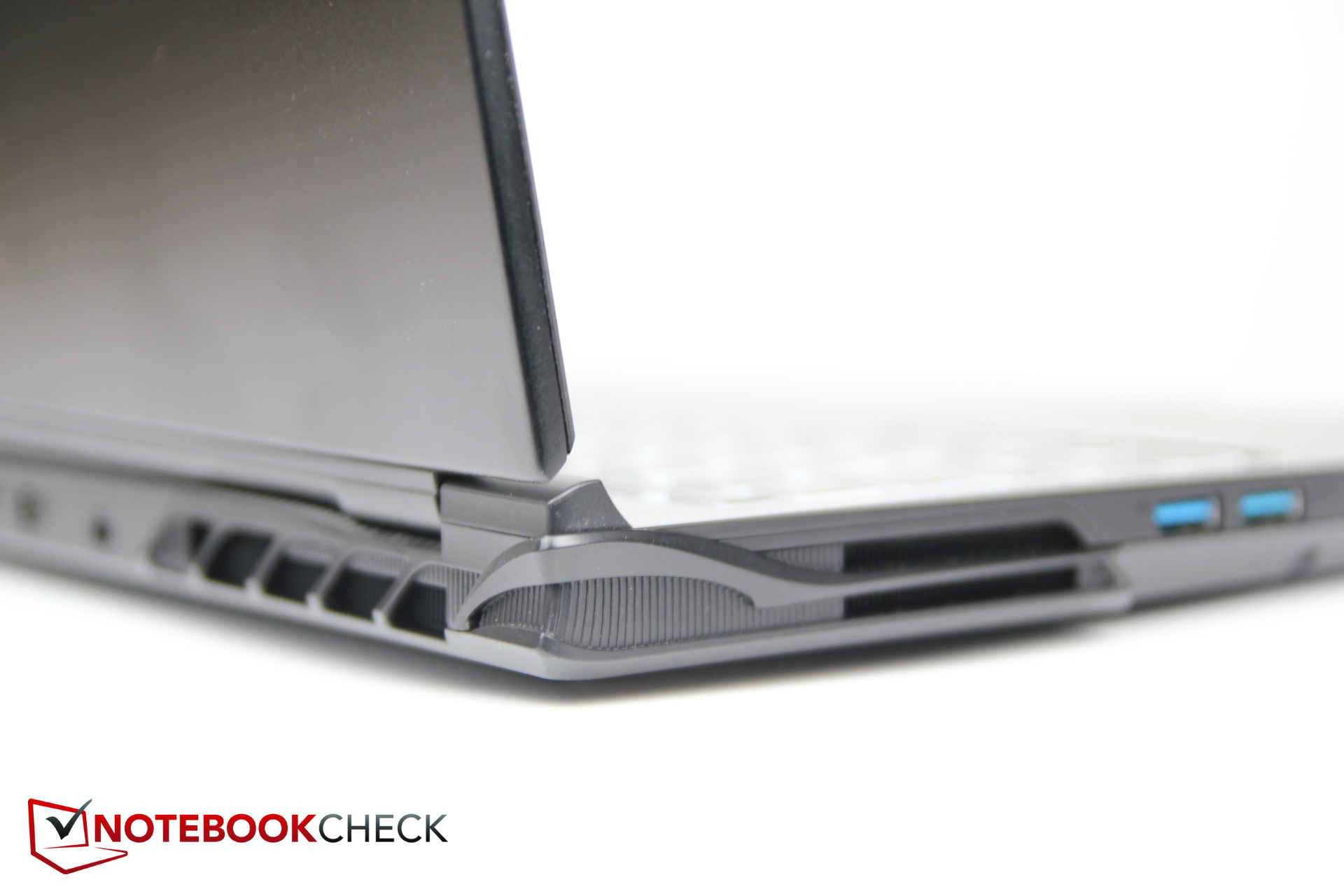 Questo lo avvicina all'XMG Neo 15 (26,6 mm) e non si colloca più tra i dispositivi molto sottili che cercano di raggiungere le dimensioni di un Razer Blade 15 (~17 mm).