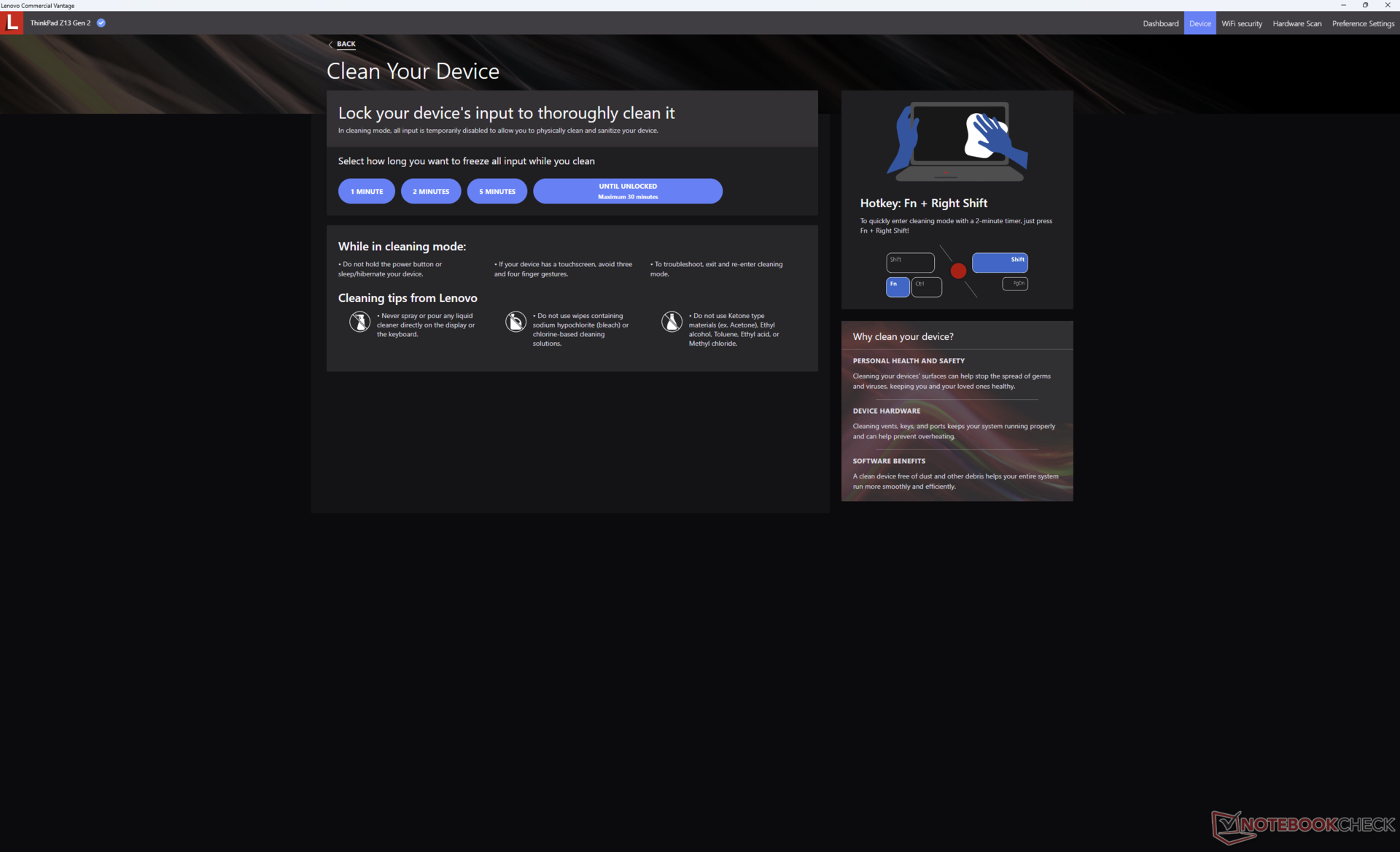 Abbiamo impostato Windows in modalità Prestazioni prima di eseguire i benchmark qui sotto. Il software preinstallato Lenovo Commercial Vantage non include opzioni di profilo energetico separate, al fine di semplificare il numero di impostazioni.