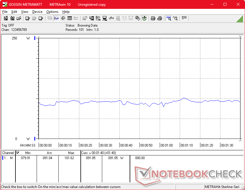 La capacità della batteria è decente per un portatile da gioco da 17 pollici, con 83 Wh per un'autonomia WLAN reale di poco più di 8 ore quando si imposta la modalità iGPU. Concorrenti come Asus TUF Gaming A17 o Acer Nitro 5 AN517 hanno batterie leggermente più grandi e tempi di esecuzione leggermente più lunghi in confronto.