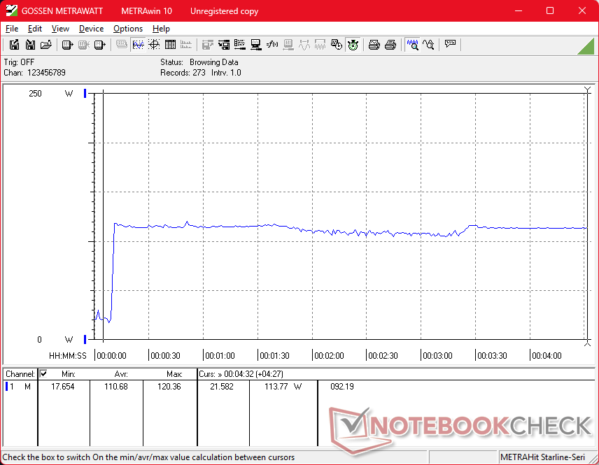 Siamo riusciti a registrare un consumo massimo di 228 W dall'adattatore CA di medie dimensioni (~18 x 8,5 x 2,5 cm) da 230 W, quando la CPU e la GPU sono al 100% di utilizzo.