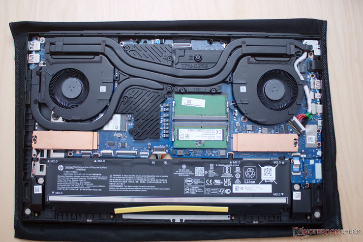 L'HP Omen 17 è relativamente facile da aprire e al suo interno sono presenti molti componenti modulari. Qui è disponibile uno slot SSD NVMe libero. Un diffusore di calore e un pad termico sono già stati preinstallati. Tuttavia, la sostituzione del modulo WLAN potrebbe essere problematica. Come già detto, si trova sotto le heatpipes ed è tenuto in posizione da un pad adesivo.