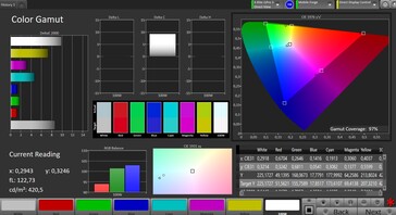 Il basso valore del nero consente un elevato contrasto e quindi la visualizzazione di colori vivaci sullo schermo. Tuttavia, nei nostri test con il fotometro spettrale e il software CalMAN, abbiamo notato una marcata tinta blu e una riproduzione leggermente imprecisa dei toni di colore verde e giallo.