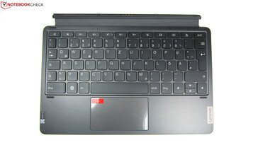 La Lenovo Precision Pen 3, disponibile separatamente, supporta 4096 livelli di pressione, ha un rilevamento dell'inclinazione integrato e si collega automaticamente al tablet tramite Bluetooth. Il Keyboard Pack, anch'esso opzionale e dotato di touchpad, è composto da una tastiera e da una cover e trasforma il Tab P11 Pro Gen 2 in una sorta di mini-notebook.