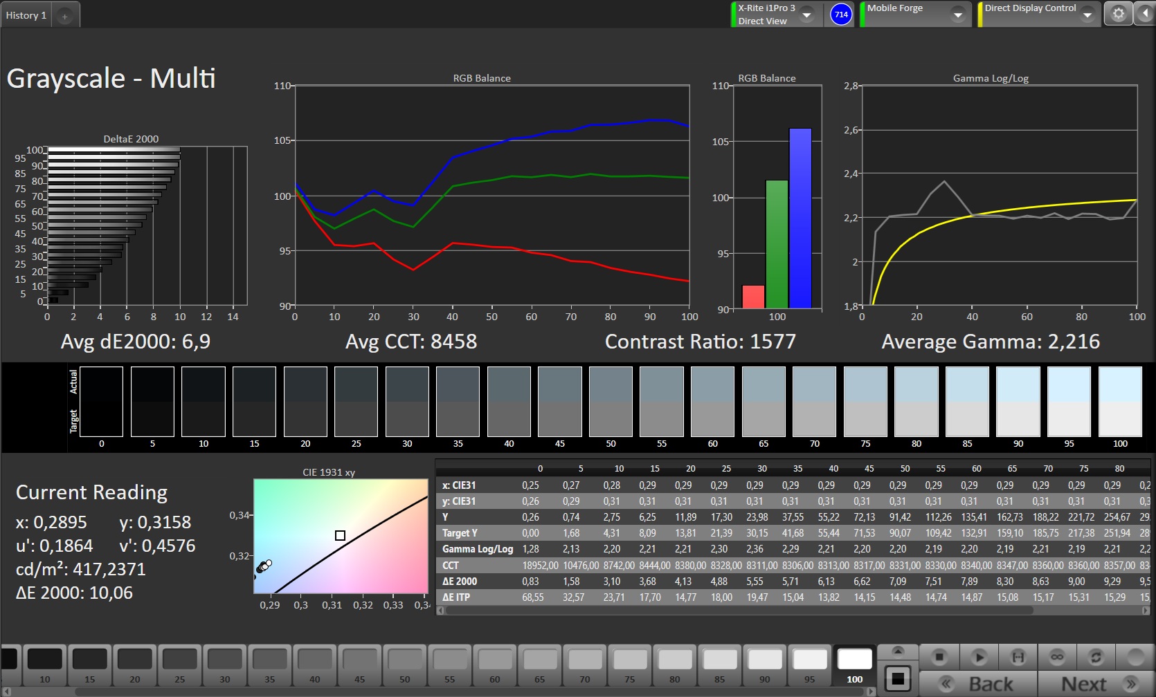 (±) | linearità dei medi adeguata (7.3% delta rispetto alla precedente frequenza)