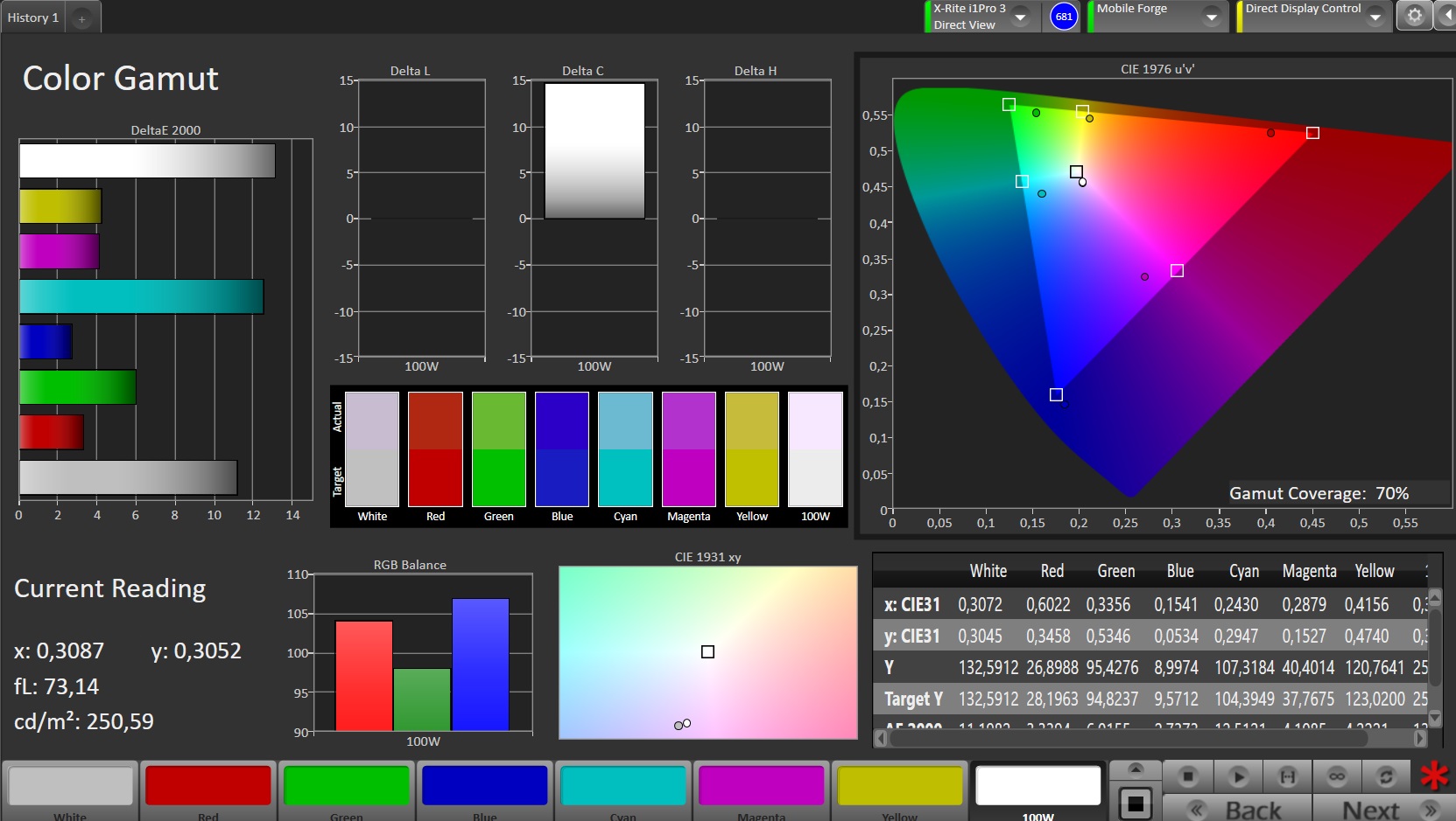 ΔE Greyscale Calman: 8.8 | ∀{0.09-98 Ø5}
