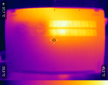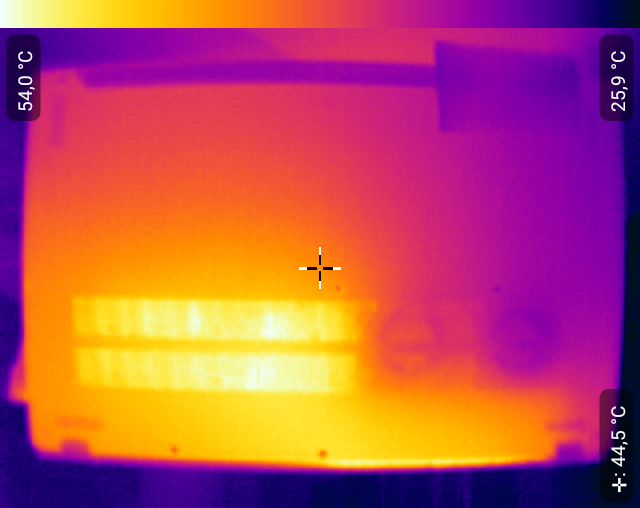 (+) In idle, la temperatura media del lato superiore è di 27.8 °C / 82 F, rispetto alla media deld ispositivo di 31.3 °C / 88 F.