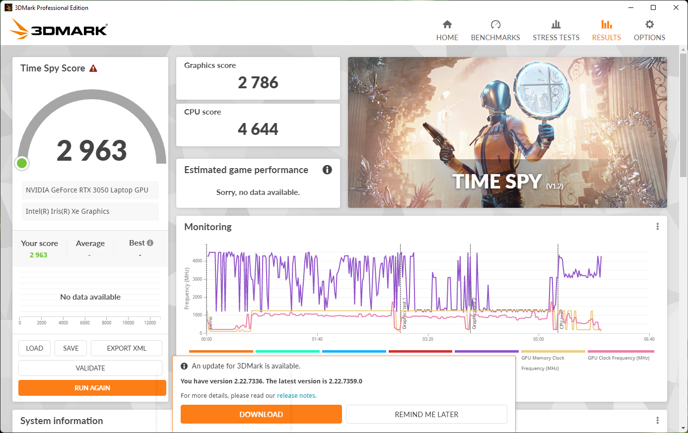 In condizioni di puro stress della dGPU, laRTX 3050 a 700 MHz, che corrisponde al suo clock di base. Il carico combinato (FurMark + Prime95) riduce la CPU a 2,4 GHz, mentre la GPU si ferma solo leggermente a 600 MHz. Le temperature sono rispettivamente di circa 75 °C e 65 °C. Un buon risultato.