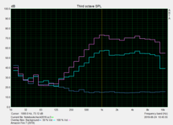 L'altoparlante del Fire 7 (2019) raggiunge un volume medio e il suo suono è relativamente ben bilanciato, anche se le frequenze più basse sono sottorappresentate. Questo rende il tablet Amazon adatto per la riproduzione della voce, ad esempio in audiolibri e serie, ma non ideale per l'ascolto di musica. Gli utenti possono collegare cuffie o altoparlanti esterni tramite Bluetooth o il jack audio da 3,5 mm per una migliore qualità audio. Quest'ultimo funziona bene e non ha un impatto negativo sulla qualità del suono.