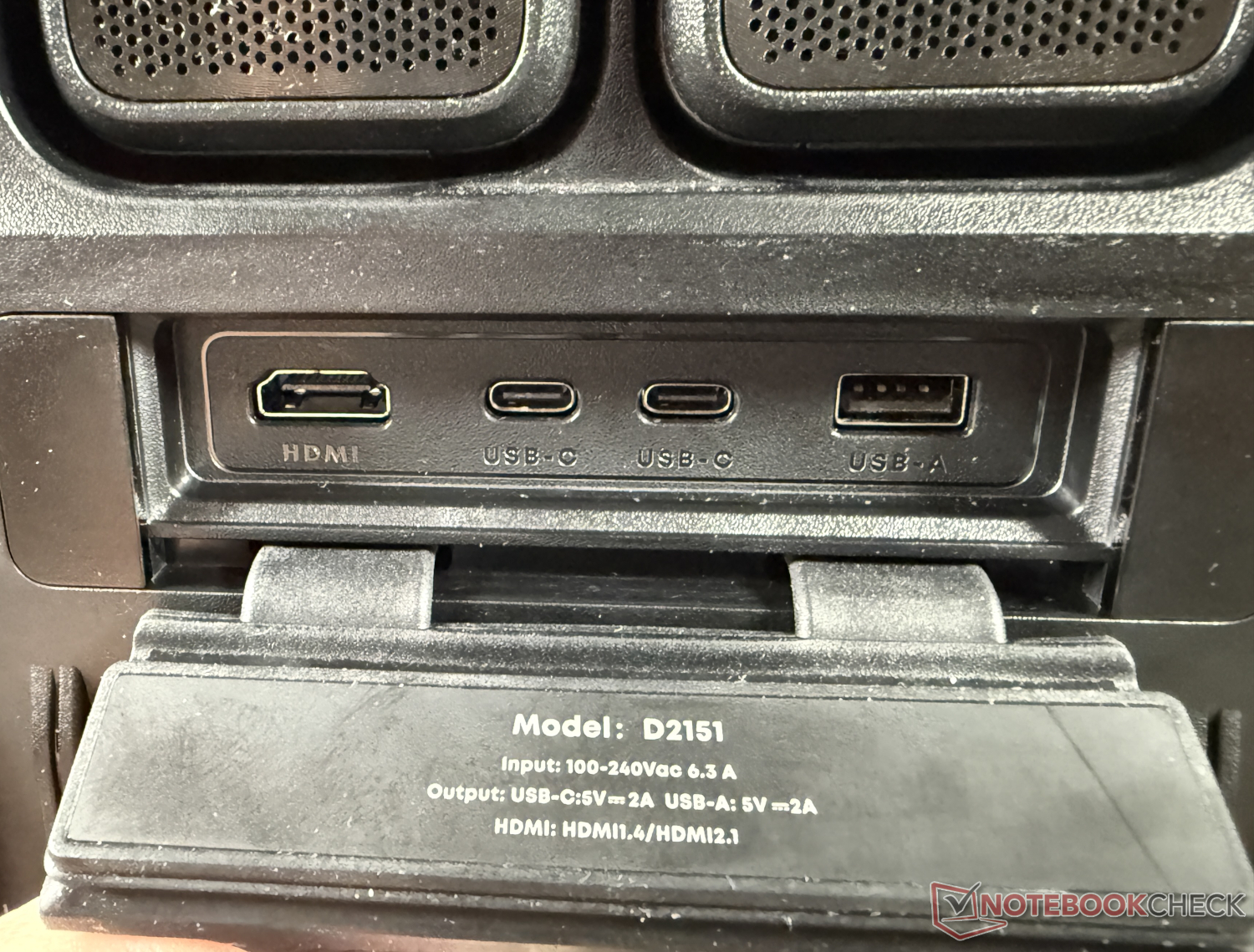 Sul retro del dispositivo, sotto una copertura gommata, si trovano diverse connessioni. C'è una porta HDMI 2.1, due porte USB-C e una porta USB-A (ciascuna con 10 W). Non c'è un'uscita audio (come sul Nebula X1) o una porta LAN. La connettività wireless è fornita tramite Wi-Fi 5 a doppia banda e Bluetooth.