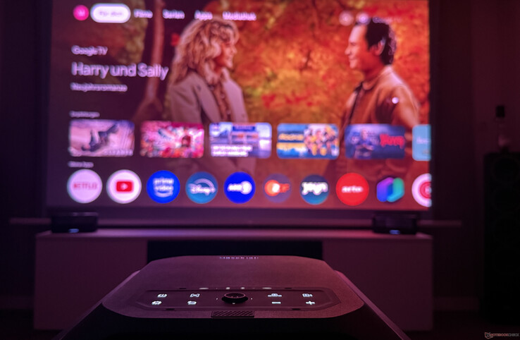 Come per il modello piccolo, lo stesso vale per il grande X1 Pro: il proiettore laser offre un'immagine attraente in ambienti bui. Il risultato è perfettamente accettabile anche al chiuso, alla luce del giorno, ad esempio per guardare il calcio il sabato pomeriggio.