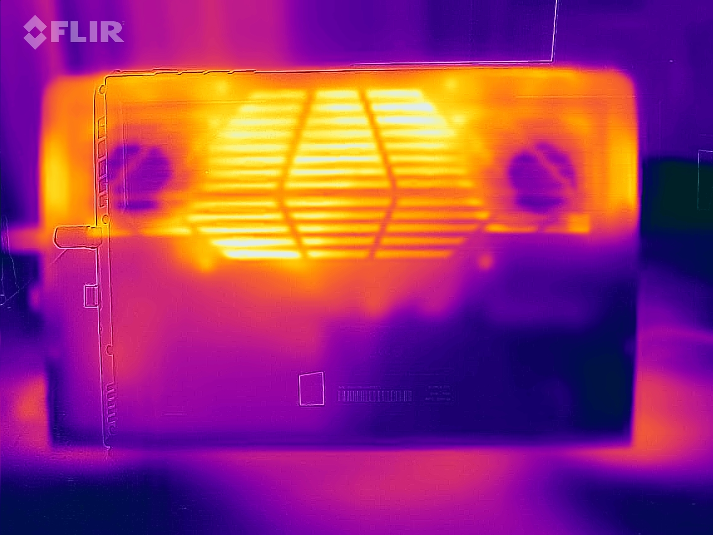 Gran parte del calore viene rimosso attraverso la parte inferiore, che diventa più calda di diversi gradi rispetto alla parte superiore. Abbiamo misurato un valore massimo di 65 °C (149 °F). Questo significa anche che non si dovrebbe usare l'Aorus 17X su una superficie imbottita, ma è meglio posizionarlo su una superficie solida come una scrivania.