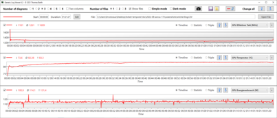 Sotto carico costante, l'i9-12900HX raggiunge i 100 °C (212 °F). Dopodiché, l'Aorus 17X deve sempre ridurre la velocità di clock in modo significativo. Tuttavia, questo accade solo se anche la scheda grafica è sottoposta a un carico pesante. Questo scenario con The Witcher 3 con impostazioni di dettaglio massime, che viene visualizzato bene, rivela lo sviluppo di calore estremamente elevato della CPU affamata di energia.