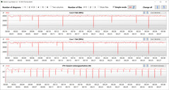 Lo stress test (Prime95 e FurMark in funzionamento continuo) rappresenta uno scenario estremo per esaminare la stabilità del sistema a pieno carico. Nel corso del test, la velocità di clock della CPU è scesa da un punto di partenza di 2,8 GHz a 1,6 GHz. La velocità del core grafico è scesa solo leggermente da 1200 a 1150 MHz.