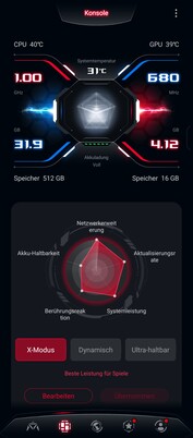 L'interfaccia ROG UI si differenzia da un normale Android soprattutto per le sue caratteristiche di gioco. In primo luogo, perché la modalità più performante, la modalità X, è integrata direttamente nell'interfaccia utente. In secondo luogo, app come Game Genie e Armory Crate possono essere utilizzate per configurare non solo le modalità di prestazione, ma anche tutti i componenti importanti dello smartphone, come AirTrigger, il display del coperchio posteriore e la ventola esterna.
