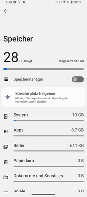Le due porte USB-C sono insolite per uno smartphone. La porta USB-C sul fondo funziona alla velocità di USB 2.0, è destinata principalmente alla ricarica dello smartphone e supporta le funzioni Quick Charge 3.0 e PD 3.0. La seconda porta USB-C si trova al centro, sul lato lungo sinistro, funziona alla velocità di USB 3.2 Gen.2, supporta anche Quick Charge 5.0 e può emettere immagini 4K tramite DisplayPort 1.4. Nello slot SIM trovano posto due schede Nano SIM.