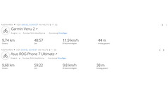 Durante un breve tour in bicicletta e rispetto allo smartwatch Garmin Venu 2, il ROG Phone 7 Ultimate ha dimostrato di essere perfettamente adatto alle attività di navigazione. A parte minime deviazioni, il percorso è stato registrato quasi con la stessa precisione.