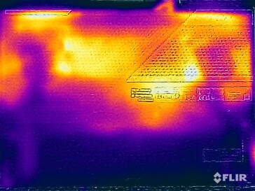 Nonostante le ventole relativamente silenziose, le temperature superficiali non destano alcuna preoccupazione. Anche se in alcuni punti isolati si misurano più di 50 °C (122 °F) sotto carico, la tastiera rimane molto fresca e non ci sono limitazioni durante il gioco