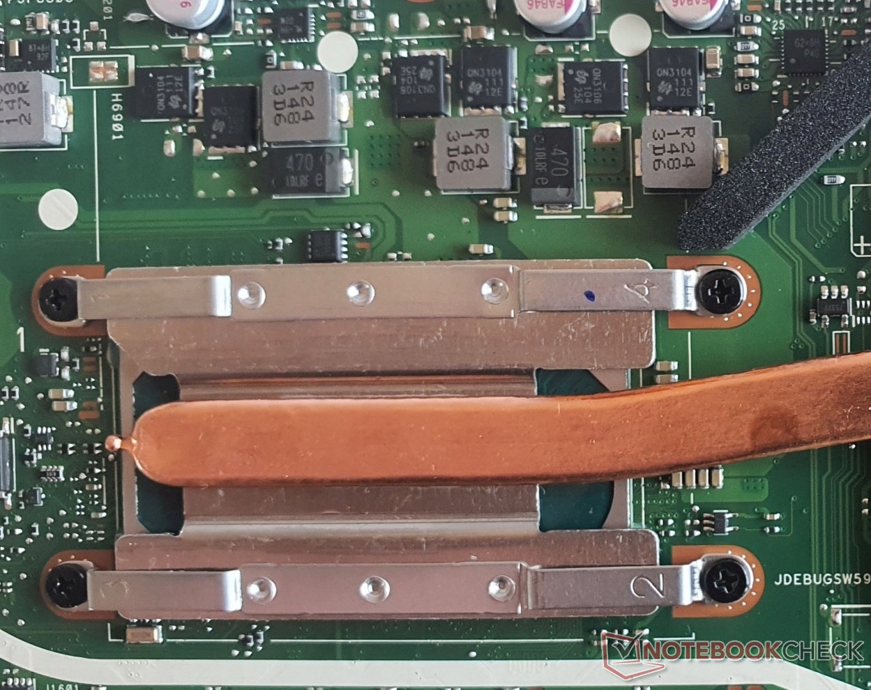 Durante lo stress test combinato (Prime95 + FurMark), le velocità di clock della CPU e della iGPU scendono rispettivamente a soli 800 MHz e circa 600 MHz. In funzionamento a batteria, sono solo 700 e 400 MHz rispettivamente, mentre le temperature del core sono solo 66 °C (151 °F) durante quel periodo e la ventola rimane tranquilla.