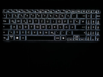 L'etichettatura della grande tastiera argentata offre un buon contrasto e presenta anche un tastierino numerico dedicato, i cui tasti sono un po' più stretti. Il layout è chiaro e naturalmente è incluso anche il nuovo tasto Copilot, solo che i tasti freccia sono molto piccoli. Grazie all'elevato sollevamento dei tasti e alla chiarezza della digitazione, è comodo digitare su questa tastiera anche quando si scrivono testi lunghi. Inoltre, il Vivobook ha una retroilluminazione RGB a una zona con tre impostazioni di intensità, i cui colori ed effetti possono essere impostati tramite l'applicazione MyAsus. La retroilluminazione può essere attivata e disattivata automaticamente tramite un sensore di luce ambientale.
