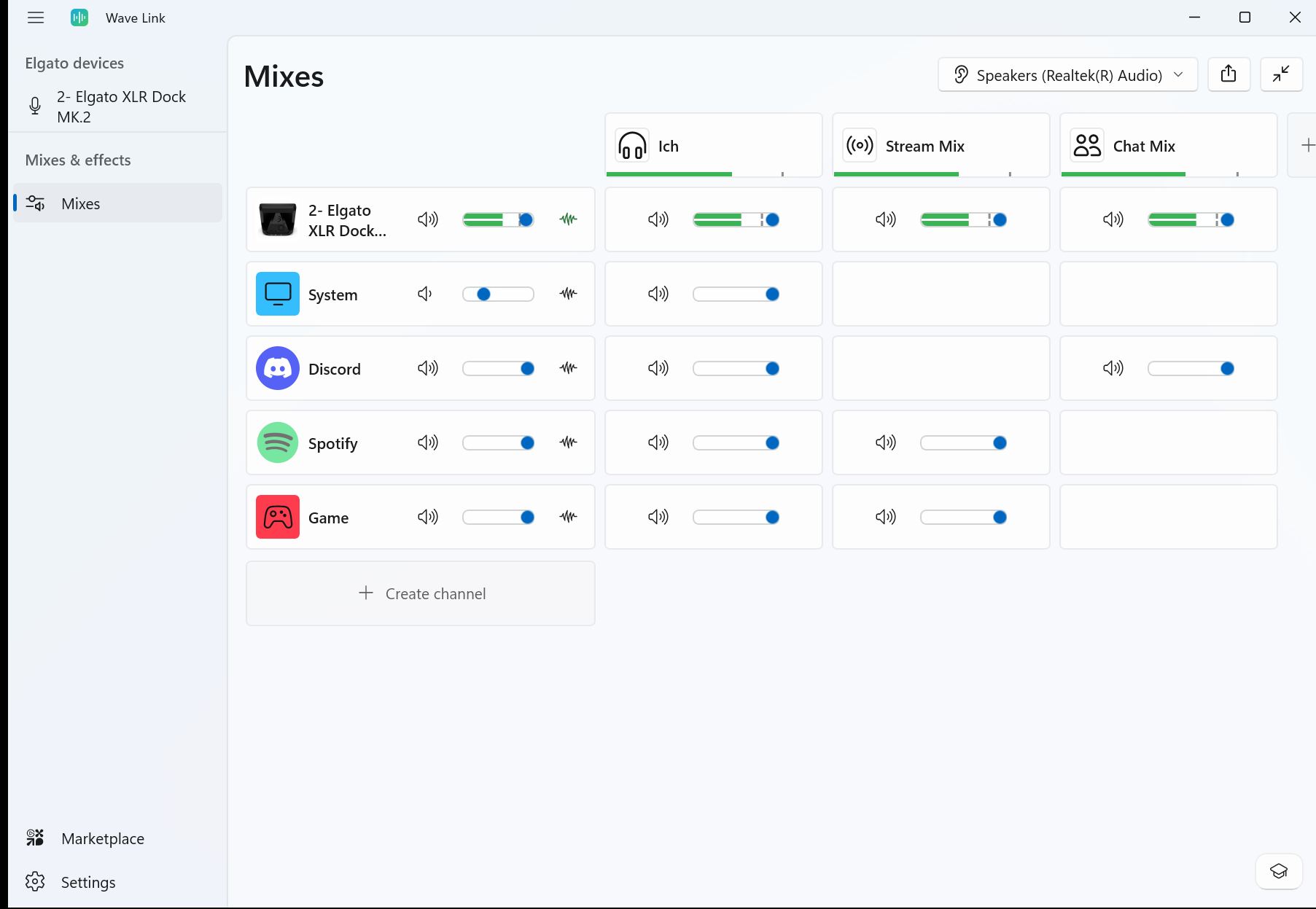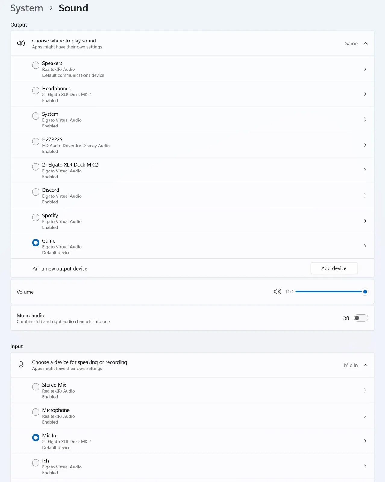 Questi mix appaiono come dispositivi di ingresso nel sistema e possono essere facilmente selezionati e commutati all'interno di applicazioni come OBS. Questo le permette, ad esempio, di passare da un mix di ingresso stream a un mix chat direttamente in OBS.