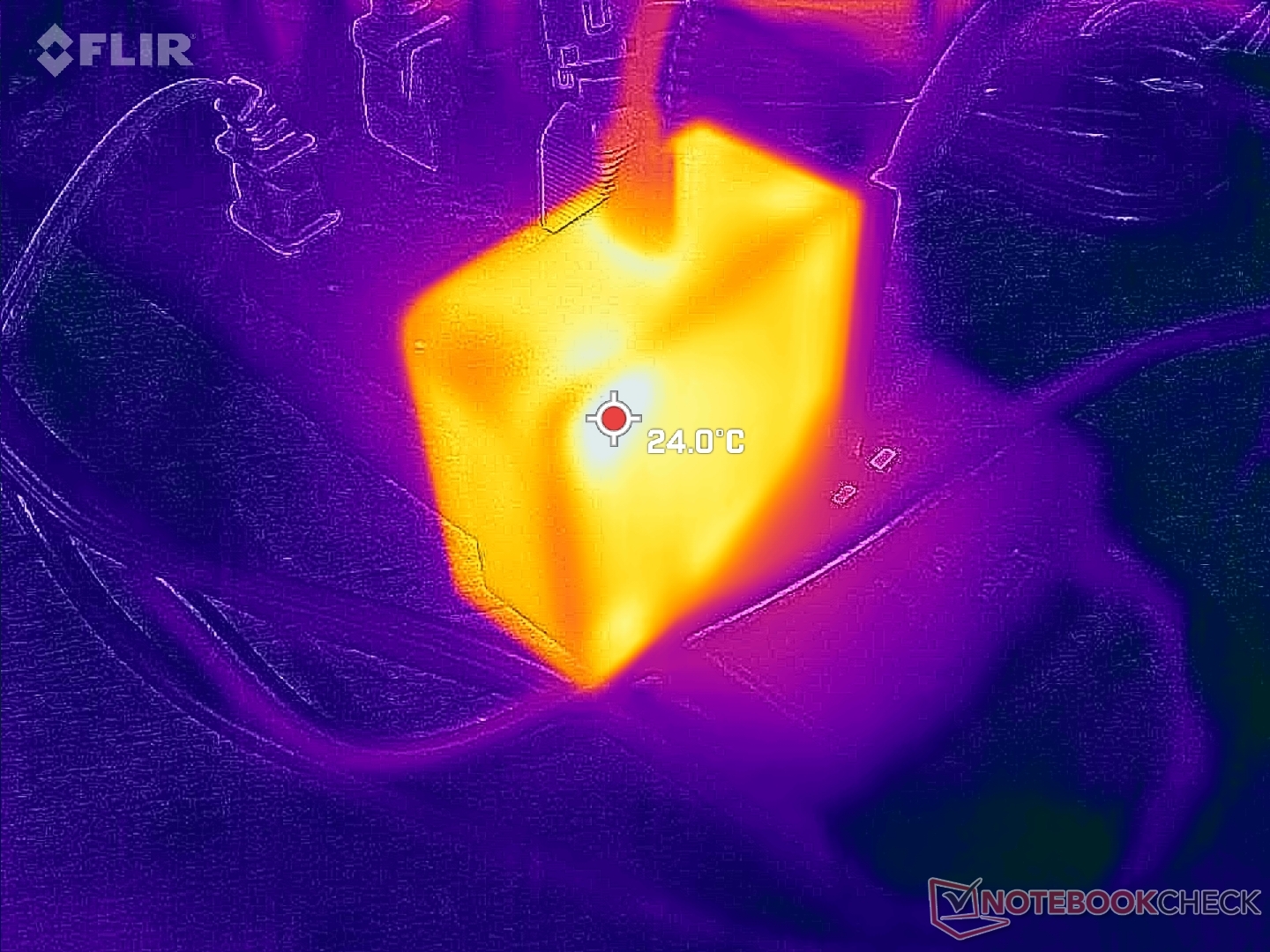Le temperature di superficie sono più calde nella metà destra del portatile rispetto a quella sinistra, a causa del posizionamento del processore all'interno. Quando si è sottoposti a carichi elevati come i giochi, i punti più caldi lungo la parte posteriore dello chassis possono essere fino a 10-14 C più caldi rispetto ai punti più freddi lungo la parte anteriore dello chassis.