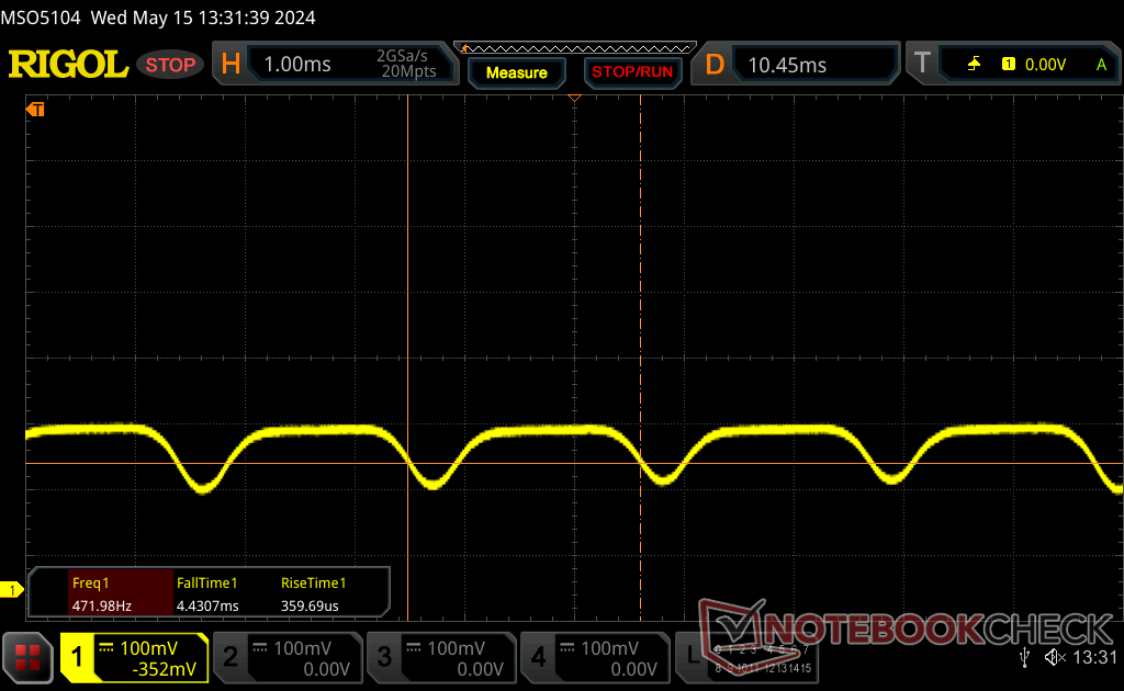 Il display può raggiungere una luminosità di 616 nits quando è abilitato l'HDR. Altrimenti, i contenuti SDR sono limitati a ~400 nits.