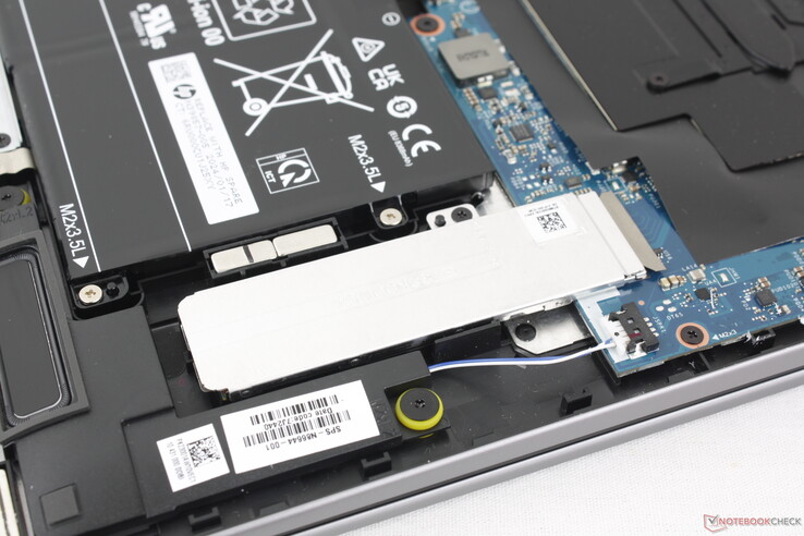Il pannello inferiore è fissato da quattro viti Torx. Rimuoverlo, tuttavia, è tutta un'altra storia, poiché i bordi sono affilati ed estremamente stretti, rendendo la manutenzione più difficile del necessario. Abbiamo riscontrato questo stesso problema su Envy x360 15, il che suggerisce che HP non si sia preoccupata di migliorare questo aspetto per il design di Envy x360 16. Non c'è molto da aggiornare all'interno, dato che la RAM è saldata.