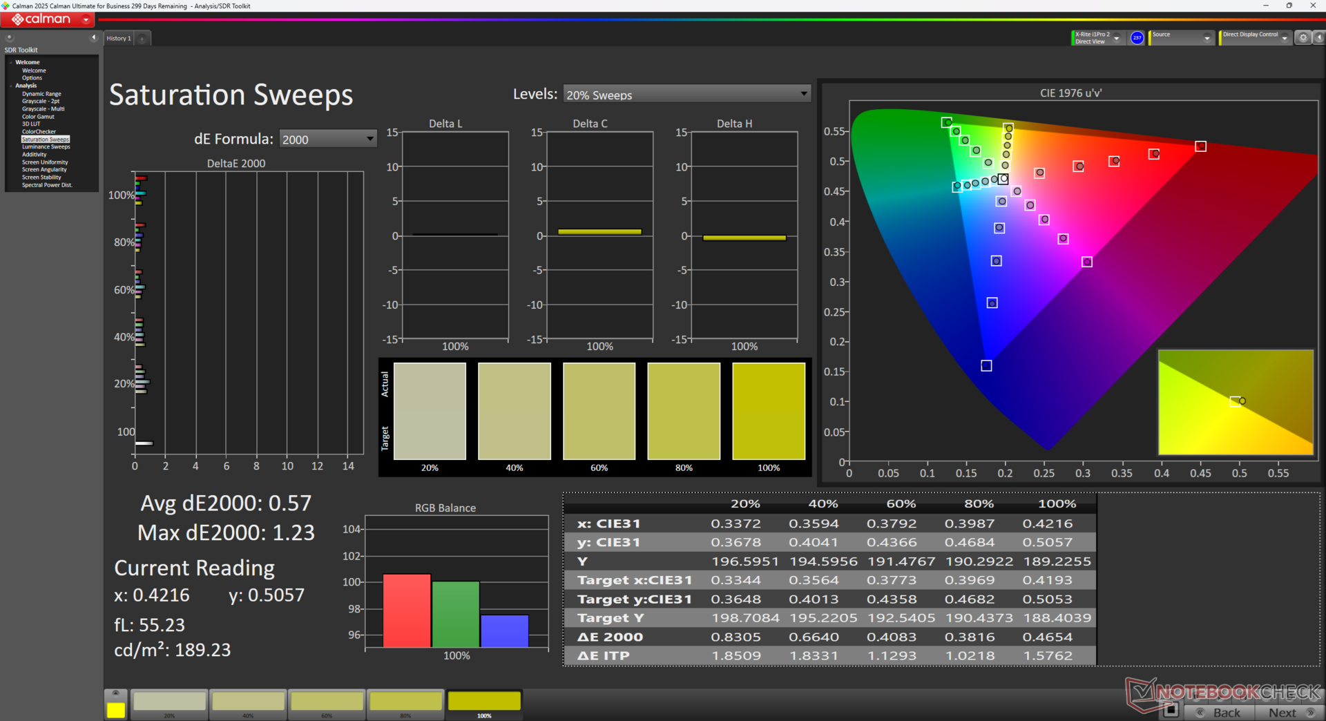ΔE Greyscale Calman: 1 | ∀{0.09-98 Ø5}