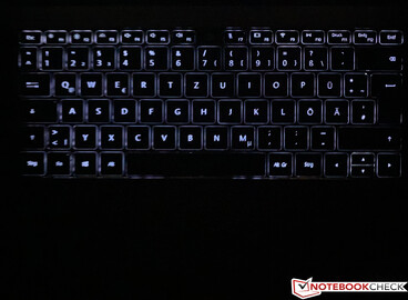 L'esperienza di digitazione è in media buona. Il rumore della battuta è abbastanza basso, ma il feedback è un po' scarso con alcuni tasti (ad esempio la barra spaziatrice, i tasti freccia). Non c'è dubbio che ci siano tastiere per laptop migliori, ma è anche possibile scrivere testi più lunghi senza problemi su MagicBook Pro. Un grande vantaggio, soprattutto nelle ore serali, è la retroilluminazione della tastiera bianca a due stadi. Il pulsante di accensione, che si trova sulla striscia dell'altoparlante di destra, è anche uno scanner di impronte digitali.