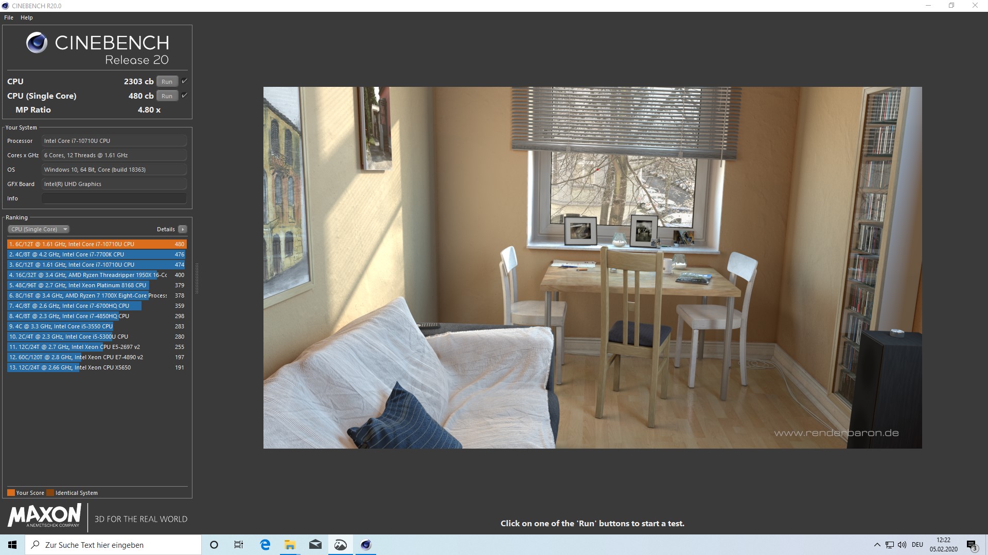 Nel nostro test, l'Intel Core i7-10710U è stato sicuramente in grado di convincere con buoni valori. Grazie ai suoi 6 cores, è chiaramente in testa ai benchmarks multithread. Ma anche le prestazioni del single-core sono impressionanti, perché il processore hexa-core è in grado di passare al comando anche in questo caso.