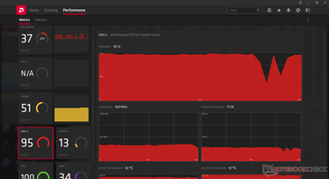 L'utilizzo della batteria limiterà le prestazioni, soprattutto perché il sistema passa automaticamente alla GPU Radeon integrata quando viene scollegato dalla corrente alternata. Un test Fire Strike effettuato con la batteria restituisce i punteggi Physics e Graphics di 20266 e 3613 punti, rispettivamente, rispetto a 22299 e 18807 punti ottenuti con l'alimentazione di rete.