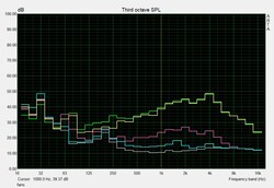 Le ventole dell'MSI GE76 Raider 11UH possono diventare piuttosto rumorose sotto carico con fino a 55 dB(A). Nel profilo della ventola "Auto", questo livello di rumore è raggiunto solo in titoli molto esigenti, ma il rumore uniforme della ventola è chiaramente udibile anche sotto carico inferiore. Rispetto ad altri portatili da gioco, il GE76 Raider ha un livello di rumore medio.