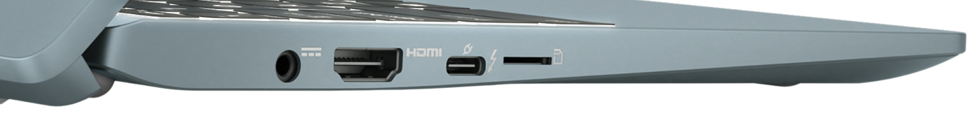 Il B11SB offre due porte USB-A (USB 3.2 Gen 2) e una singola porta USB-C (Thunderbolt 4). Quest'ultima supporta Power Delivery e DisplayPort via USB-C e permette anche di utilizzare una docking station o una GPU esterna. Questo portatile da 14 pollici include anche un totale di due porte video (1x DP, 1x HDMI). Il lettore di schede di archiviazione microSD integrato è un rappresentante più lento del suo genere (utilizzando la nostra scheda di archiviazione di riferimento AV PRO microSD 128 GB V60).
