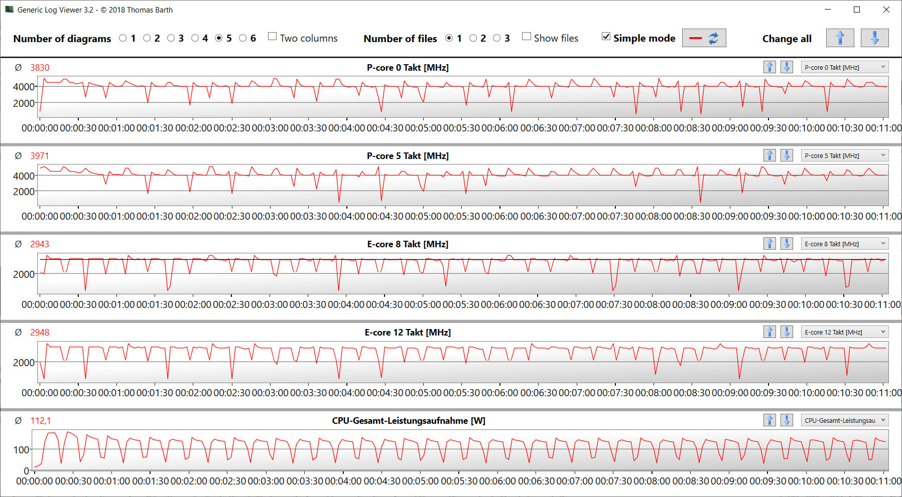 La CPU ha completato lo stress test (eseguendo Prime95 e FurMark per almeno un'ora) a velocità di elaborazione medie, mentre la GPU è stata in grado di raggiungere la sua massima velocità di clock. Lo stress test rappresenta una situazione estrema. Questo test viene condotto per verificare se il sistema è stabile quando funziona a pieno carico.