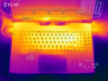 (-) La temperatura massima sul lato superiore è di 49 °C / 120 F, rispetto alla media di 40.4 °C / 105 F, che varia da 21.2 a 68.8 °C per questa classe Gaming.