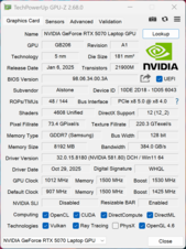 | Schenker XMG FUSION 16 (M25) Ultra 9 275HX, GeForce RTX 5070 Laptop, Samsung 9100 Pro 2 TB, OLED, 2880x1800, 16" | Lenovo Legion Pro 5 16IAX10, RTX 5070 Ultra 7 255HX, GeForce RTX 5070 Laptop, SK Hynix HFS001TEJ9X115N, OLED, 2650x1600, 16" | Schenker XMG Core 16 M25 Ryzen AI 9 HX 370, GeForce RTX 5070 Laptop, Samsung 990 Pro 2 TB MZVL72T0HDLB, IPS, 2560x1600, 16" | Asus TUF Gaming A16 FA608UP R7 260, GeForce RTX 5070 Laptop, Western Digital PC SN5000S SDEQNSJ-1T00, IPS, 2560x1600, 16" | MSI Crosshair 16 HX AI D2XWGKG Ultra 9 275HX, GeForce RTX 5070 Laptop, Micron 2500 1TB MTFDKBA1T0QGN, IPS, 2560x1600, 16" | Aorus Elite 16 AE6H Ultra 9 275HX, GeForce RTX 5070 Laptop, Gigabyte AG470S1TB-SI B10, IPS, 2560x1600, 16" | Gigabyte Gaming A16 GA6H i7-13620H, GeForce RTX 5070 Laptop, Kingston OM8PGP41024Q-A0, IPS, 2560x1600, 16" | Media NVIDIA GeForce RTX 5070 Laptop | Media della classe Gaming | |