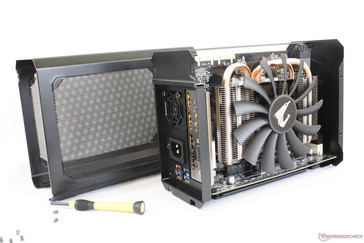 Aorus copre la Gaming Box per un periodo di tre anni come standard. In confronto, la maggior parte dei computer portatili è coperta solo per il primo anno o, nella migliore delle ipotesi, per due anni. Non possiamo individuare adesivi "in caso di rimozione la garanzia non è valida" in nessuna parte del sistema.